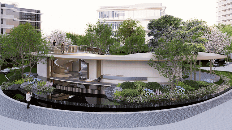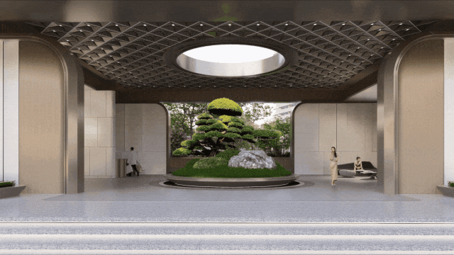 自带地方花圃会客堂,则操纵双层立体叠合、凹凸叠水的妙笔设想,为业从带来了专属的大雅聚场。于此,会客洽商、喝茶棋战,或是枯坐赏景,皆是致趣。