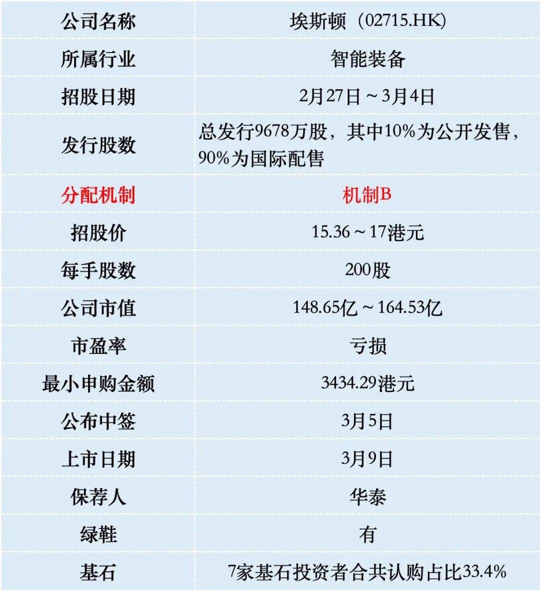 埃斯顿港股IPO招股价15。36~17港元,2月27日A股股价23。75元人平易近币(约27。1港元),按照上限制价算,港股比拟A股折价37%。