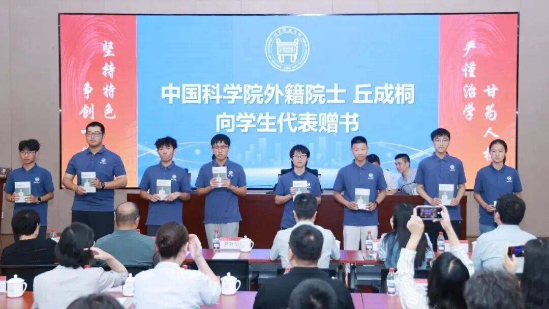 丘成桐向学生代表赠书《数学人生》,册本是通往学问的海洋,但愿同窗们正在大学四年中精读书本科学学问,品尝出色人生。